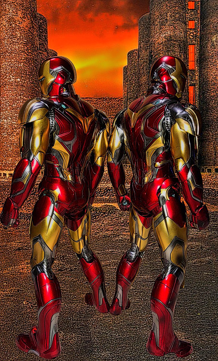 #夜のフィギュア撮影会 4/11 お題『決めポーズ』過去作 来日中に日本の有名ヒーローと対面し決めポーズで記念撮影するトニー・スターク。 #仮面ライダー #本郷猛 #ironman #TonyStark #SHFiguarts