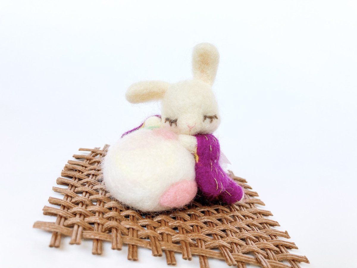 はんなりうさぎのお昼寝 ー桜饅頭ー 羊毛フェルト置物|ハンドメイド、クリエイター作品のマーケットプレイス #Creema creema.jp/item/13182871/… @Creema_jp #creemaで販売中 #creema新作 #羊毛フェルト #needlefelt #needlefelting #うさぎ #rabbit #着物 #kimono