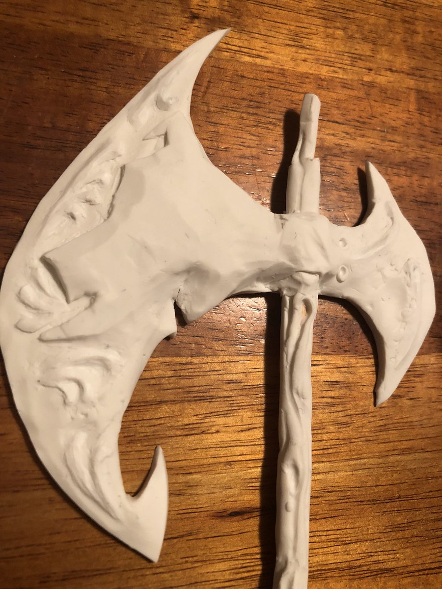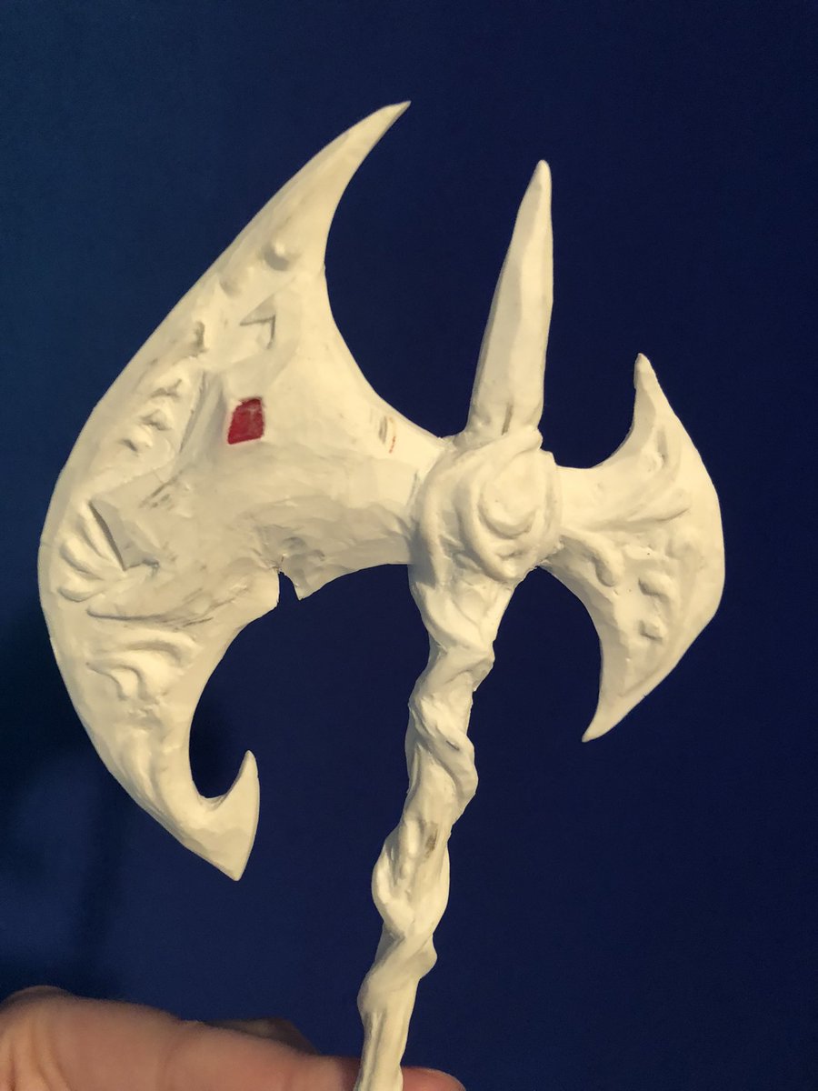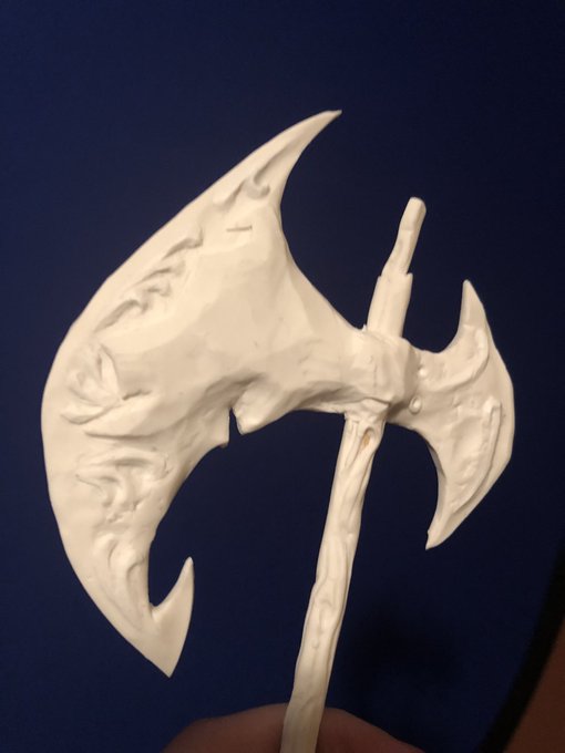 Wonderful news! I’ve finished sculpting the axe of peace! (Open to see all the details) I have a color shifting purple paint to mimic netherite this is going to be so cool!!! 🐷👑🪓 #technofanart #technobladefanart #mcytfanart #dsmpfanart #technoblade #sculpture