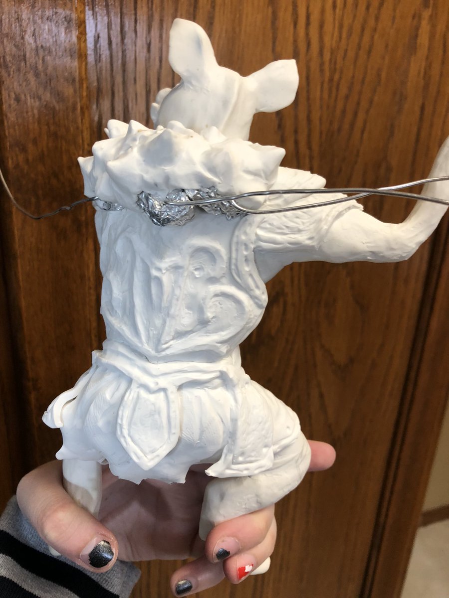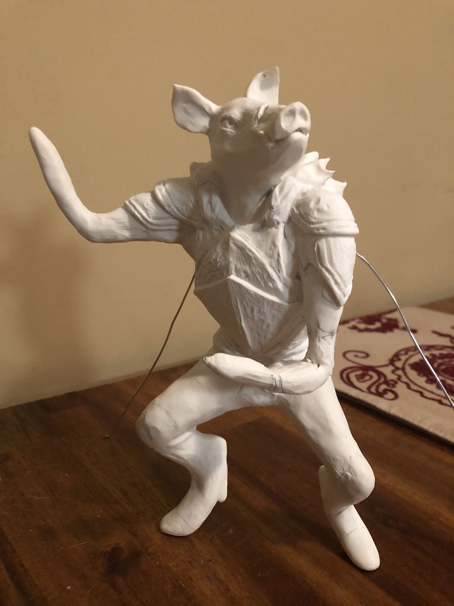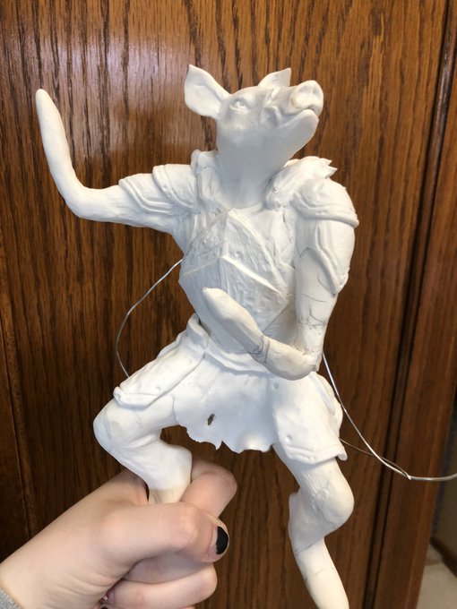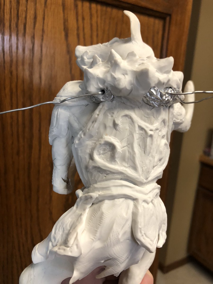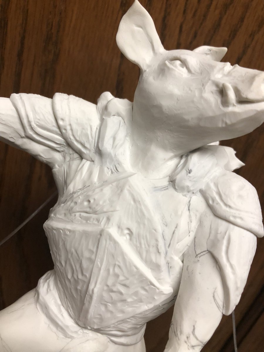 I have a sculpture update! I’ve added the top half of the armor and started the fur and base of the cape. Unfortunately the arm twisted and broke at the elbow but it should be a simple fix (right?) 🐷 #technobladefanart #technoblade #sculpture #mcytfanart #dsmpfanart #WIP