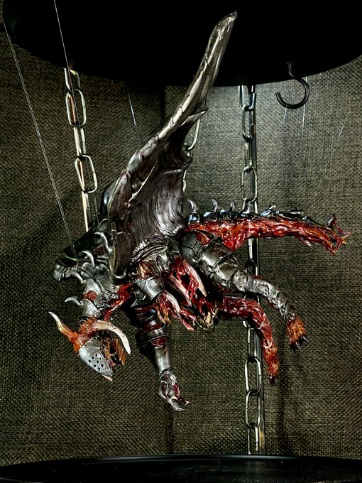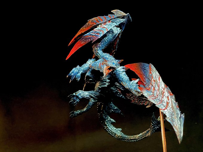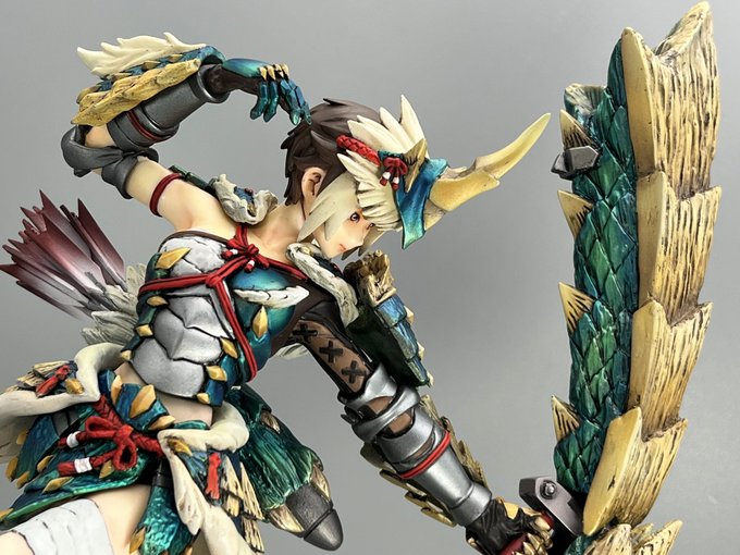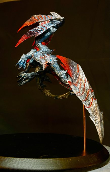 明日展示するイコールドラゴンウェポンはフィニッシャーのスズキしんやさん@suzuki_predat に彩色していただきました!! 重厚感のある金属感と生々しい彩色が最ッッッッ高にカッコイイので皆様是非見に来てください!!!! #wf2023s #モンハン #MonsterHunter