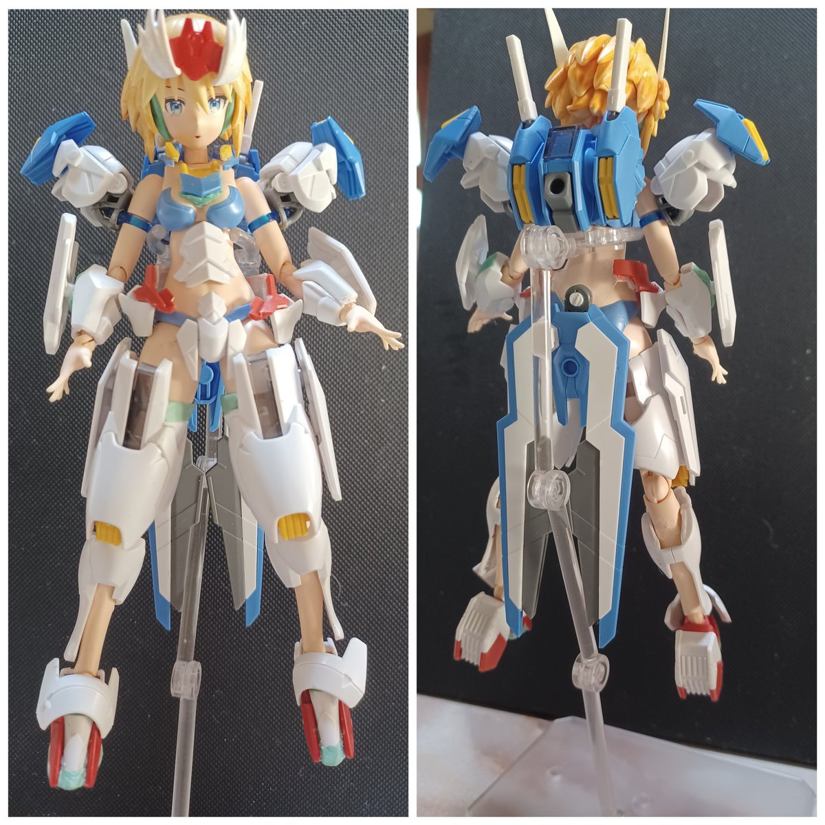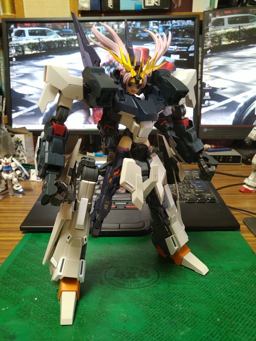 だいたいこんなかんじになりました まだまだ保持力が弱いので補強や手直しが必要 頭部をどうやって落とし込むかがまだ決まらず悩んでます 頭部はアルカに変更 ルルチェには負けませんよ(ナニガ?) #ガンダムエアリアル #MS少女 #30MSの波に乗れ #ガンプラ twitter.com/senahina2/stat…