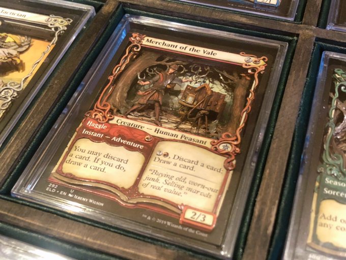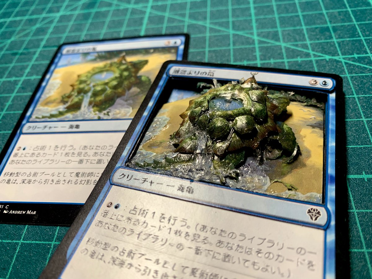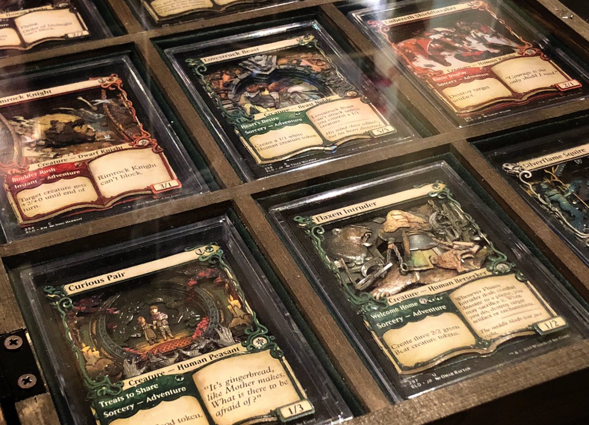 先日ファミリーのぱらぴえろさん(@parapierro999 )が新作のシャドーボックスを持って遊びに来てくださいました! MTGエルドレインの王権のショーケース枠の作品です。 当店で展示させて頂いていますので是非みなさん見に来てください! #TCGbar_Oneand #シャドーボックス #MTG #MagicTheGathering