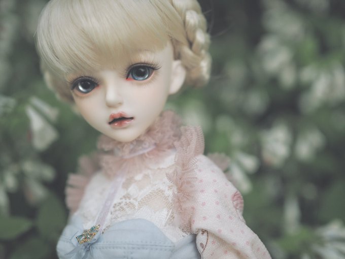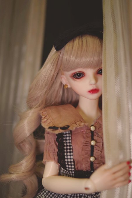 #今夜のドール撮影120分一本勝負 お題【たわむれる】過去写真 撮影中に2人して何してんの?😶 「ほっぺむにむに🐙」 「首こちょこちょ🍓」 #MyouDoll #Michelle #TelesthesiaDoll #俊贤