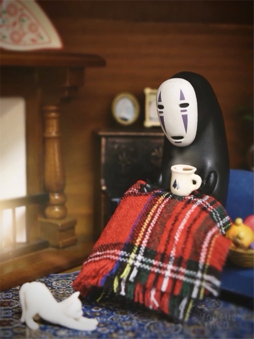 #夜のフィギュア撮影会 11/25 お題 『今月のベストオモ写』 今月はたくさんは撮れなかったけど、1枚1枚楽しく撮れました🌼 #オモ写 #toyphotography #カオナシ #ジブリ #StudioGhibli #Miyazaki #コーヒーカップフィギュアマスコット #capsuletoy