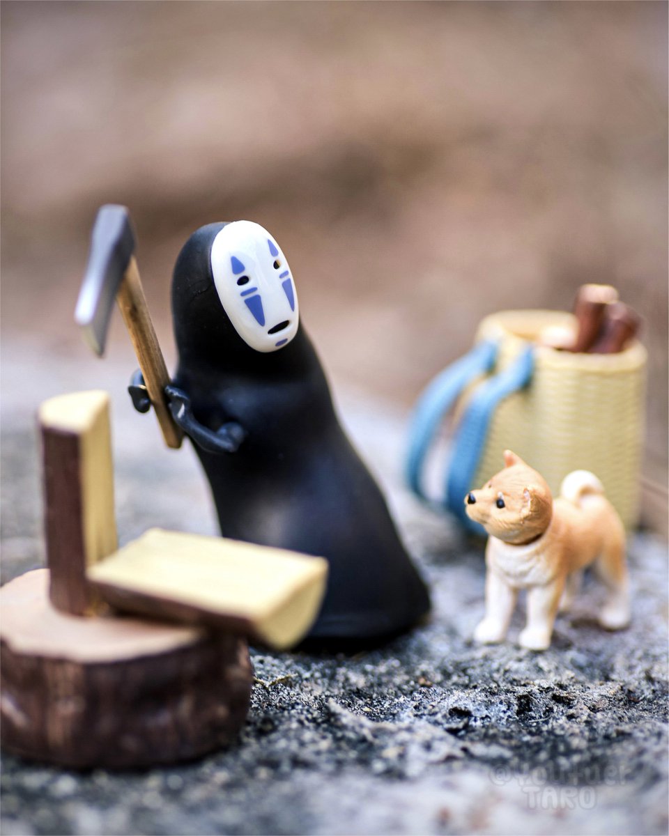 ⛰薪割り🌲 寒くて弄れなかったけど、次はもうちょっと絞ってみよう_φ(・_・ #オモ写 #toyphotography #カオナシ #薪 #千と千尋の神隠し #ジブリ #SpiritedAway #StudioGhibli #Miyazaki