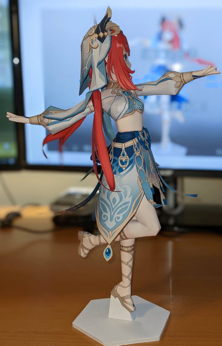 @sv0623paper Nilou has been completed. This time added additional reinforcements to ankle, foot and base for magnets. Magnets are hidden in foot and base for easy removal. #Genshinlmpact #Nilou #ペーパークラフト #papercraft