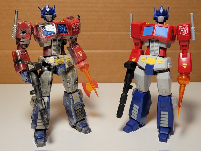 Custom Battle Damaged #FlameToys G1 #OptimusPrime This was by far the funest custom I've made and probably the most times I cut myself with an exacto knife. Took 2 days to build damage and paint. Do you think I did well? #Transformers #ModelKit #customtoys