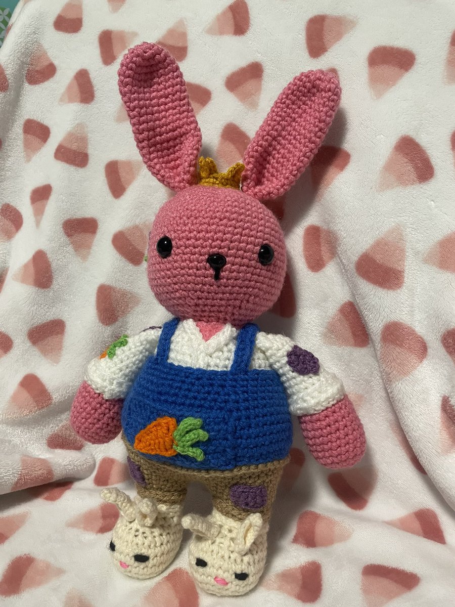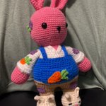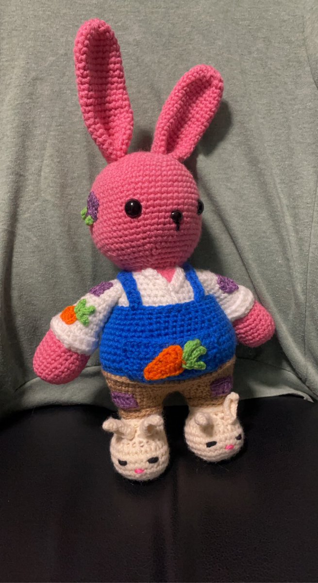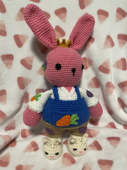 This took way too long to crochet, but he's here! BunnyBlade!! And I also just now realised I forgot to crochet a carrot for him, it's 5:30 am, give me some slack- #technobladefanart #technofanart #bunnyblade #originsmpfanart #crochet