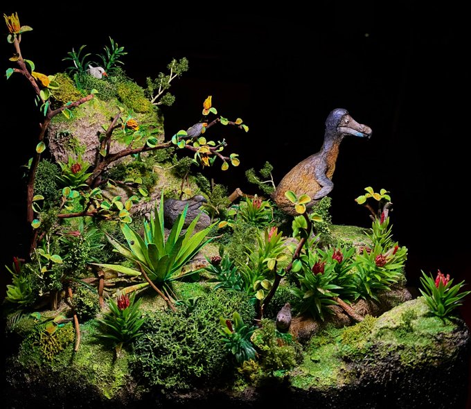 I realized I never showed you pictures (without background added in Photoshop) of the first #Stegouros sculpture I made for the species presentation in December 2021. Epoxy clay and artificial plants #paleoart #handsculpted #handmade #handpainted #dinosaur #parankylosauria