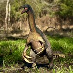 A #Skorpiovenator raid the neglected nest of a female #Argentinosaurus and takes a small snack for the trip home. 1/24 scale, epoxy clay #paleoart #dinosaur #abelisauridae #handsculpted #handmade #handpainted #mesozoic #cretaceous #argentina #patagonia