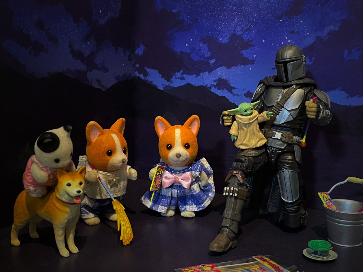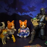残暑に花火🎆🎇 Fireworks of last summer🎇🎆 今回は珍しくPhotoshopで少し加工。 (普段は仕事以外で使いたくないので、使わないように撮ってますw) #toyphotography #rement #マンダロリアン #シルバニアファミリー #グローグー #マンドー #photoshop #オモ写