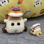 1枚目 お揃いのリボンをつけたモルガールズ🎀 2枚目 猫耳マントのアビーと猫耳に驚くシロモ 3枚目 寿司モルカー(海老)と 寿司モルカーに憧れるベビモルカー(タコ) 4枚目 ハロウィンのお菓子お届け隊 #モルカー #モルカーファンアート #PUIPUIハロウィン #モルハロウィン