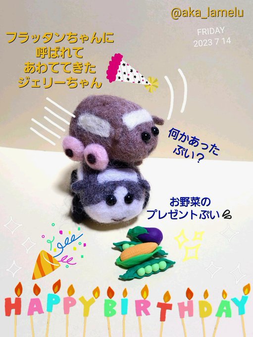 今日はジェリーちゃんのお誕生日🥳🎉 仲良しのフラッタンちゃんから呼ばれてぷい〜!と思わず背中にライドオン🤣 後からお野菜のプレゼントが分かったみたい❣️ すばしっこいジェリーちゃんみんなからのプレゼントちゃんと貰えるのかな…?🤭💕きっと大丈夫🥰 #PUIPUIBIRTHDAY #モルカーファンアート