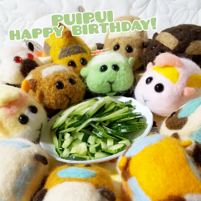 🐹モルカー×羊毛フェルト🥒 わさびちゃんお誕生日おめでとう💚 新鮮きゅうりのプレゼント🎁 「わーい✨いっただっきますプイーッ❣️もぐもぐ…なんてみずみずしいきゅうりプイ🥹」 わさびちゃんが喜んでくれて、野菜販売モルカーちゃんも嬉しそう🩷 #モルカー #モルカーファンアート #PUIPUIBIRTHDAY