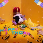 🐹モルカー×ミニチュア🎂 バナナちゃんHappy Birthday💕 「シナモンとわんちゃんのスイーツで お祝いプイ🎂❤️」 「わー❣️オッドちゃんありがとうプイ😍 かわいいスイーツうれしいプイ💕✨」 大喜びのバナナちゃんでした🍌🩷 #モルカー #モルカーファンアート #PUIPUIBIRTHDAY