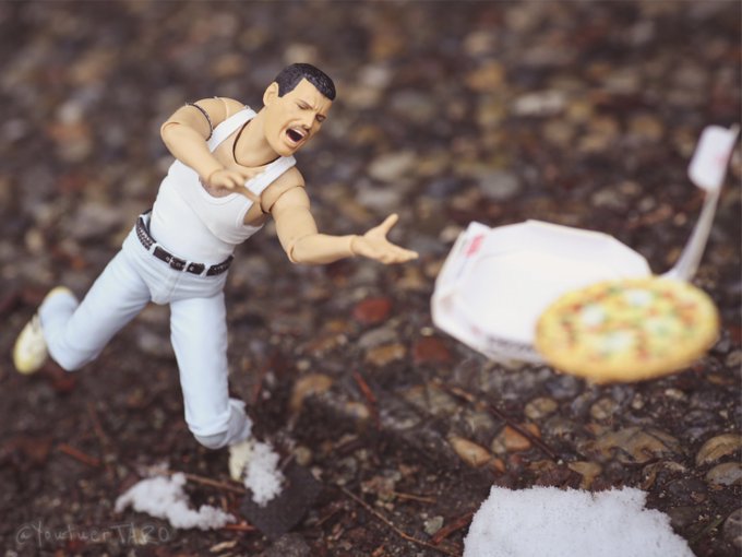 #夜のフィギュア撮影会 12/29お題 『失敗』 ピッツァー(;´༎ຶД༎ຶ`)━っっ! (過去作) #オモ写 #toyphotography #pizza #ピザ #FreddieMercury #PizzaLa #ピザーラ #capsuletoy