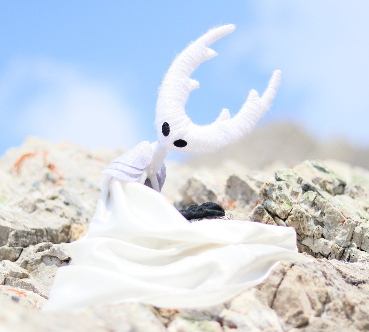 PeeVee with royal cape so fluffy (minky!) that Hornet spends days snuggling in it 😂🌸🤍 Please check our Etsy shop for all the softiness 🌸🤍 #hollowknight #hollowknightart #hollowknightfanart #purevessel #silksong #Hornet