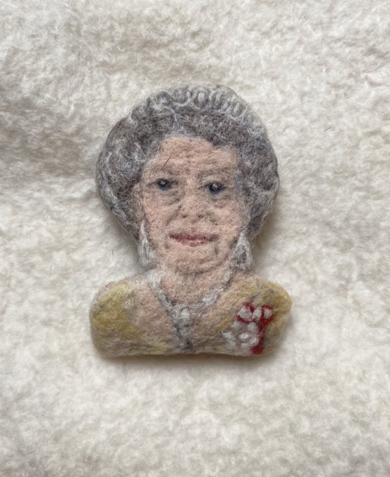 “We should take comfort that while we may have more still to endure, better days will return: we will be with our friends again, we will be with our families again, we will meet again.” Wool Brooch #QE2 #queenelizabeth #woolfelt #merinowool #felting #needlefelt #羊毛フェルト