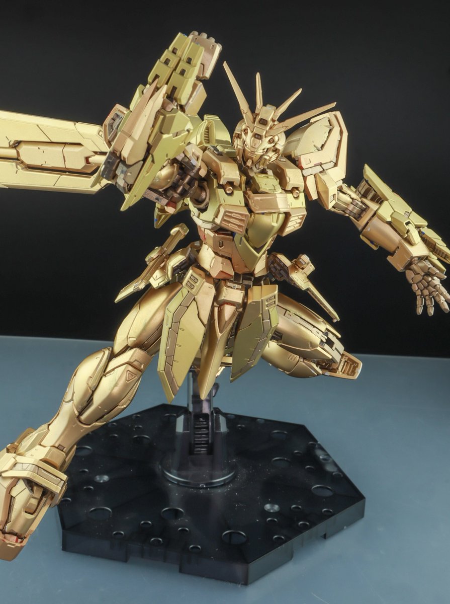 RGゴッドガンダム完成しました! ディテール掘り直しを行い最低限のディティールアップを行いRGの造形を生かせるような塗装を意識しました。 2期OPで印象的な腕組ポーズを再現するためにコーナーポストを3Dプリンタで自作しました(1/2) #RGゴッドガンダム #ガンプラ