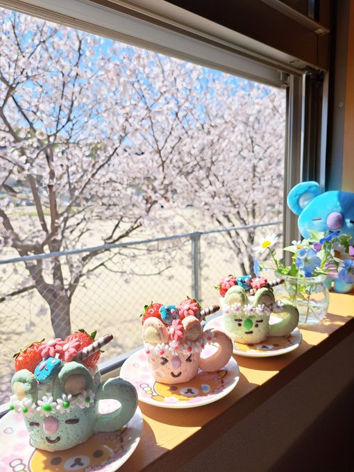 今日のKOYA活🐨 クッキーショット🍪 本当はコーヒーやミルクを入れるみたいだけどパフェ風に🍨 家の横の公園は桜が満開🌸 ナムが優しさに包まれる事を願います🍀*゜ Flowers for Joon🌸 #이거봐남준아_널위한벚꽃이야 #아미들의벚꽃_남준이가봤으면좋겠다 #RM #Namjoon #btsfanart