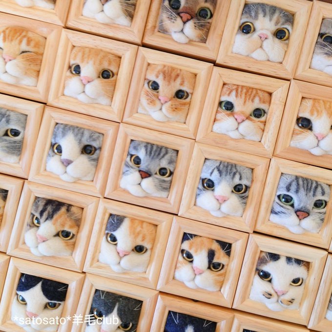 #RTで作家さんの世界を広げるタグ 動物を #羊毛フェルト でチクチク作っています。 最近はフレームに入った #猫フレーム がメインです🐱💕 ↑こちらはカプセルトイとなって10月26日に発売!