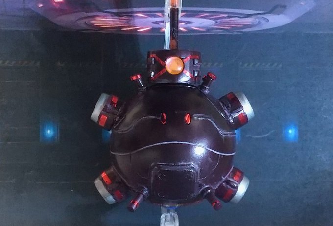 リリル・ハロタイプ(吊り下げられた溶鉱炉)出来ました(= ° ω °= )/ 暗闇ステージの雰囲気を出す為にハイライトを外にする逆グラデーションで塗装しました。 #rtypefinal2