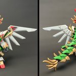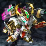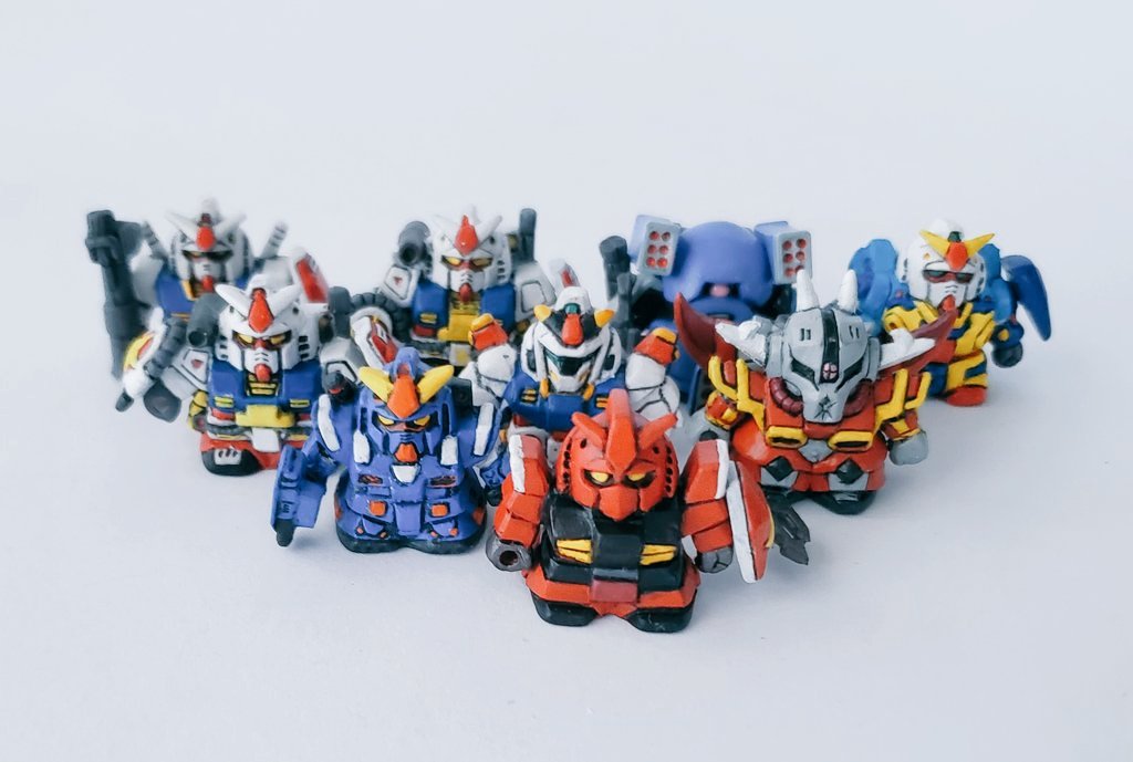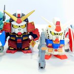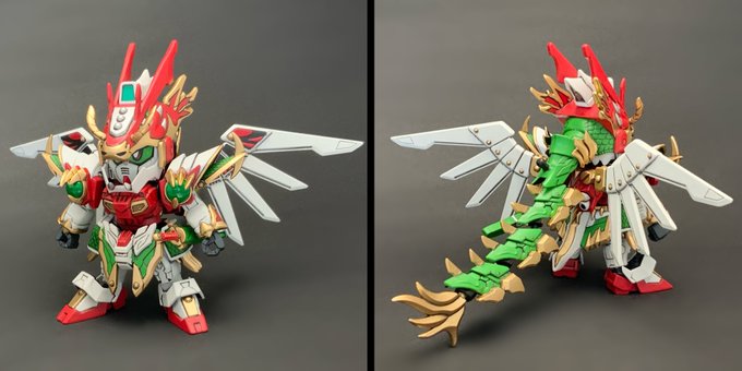 横井画伯お誕生日おめでとうございます! いつか #SDガンダムの日 でにせガンダム作りたいと思ってたので今回の機会に突貫で作りました!笑 全フォームフェイスパーツ共通なのでよーく見るとガンダムの顔の中に夏侯惇フェイスが見えます。笑 twitter.com/cloversenser/s…
