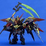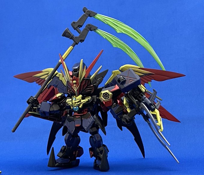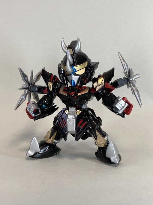 #SDガンダムの日 ダークマスクコマンダー デスウイングゼロ 5人の技師によりウイング デスサイズ ヘビーアームズ サンドロック シェンロンの5体の性能をフィードバックされたSD戦士 #SD黙示録 において、光焔の色彩のひとつを受け継いだ 冥闇 ノ ウイングゼロである #7人のマスクコマンダー twitter.com/shironiji777/s…