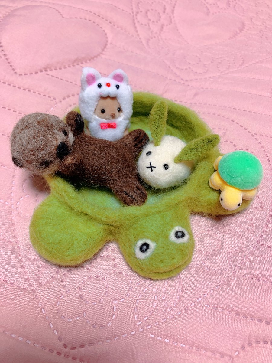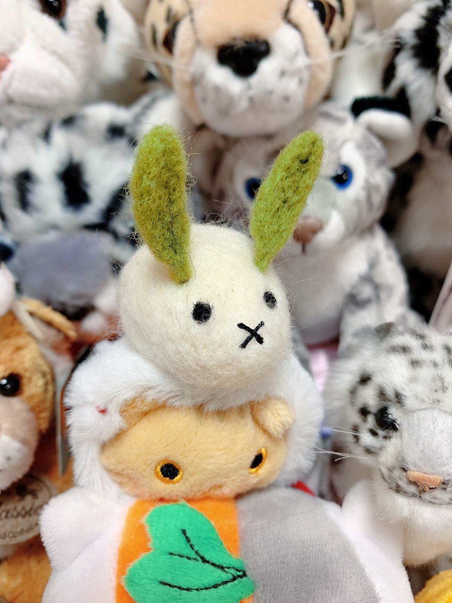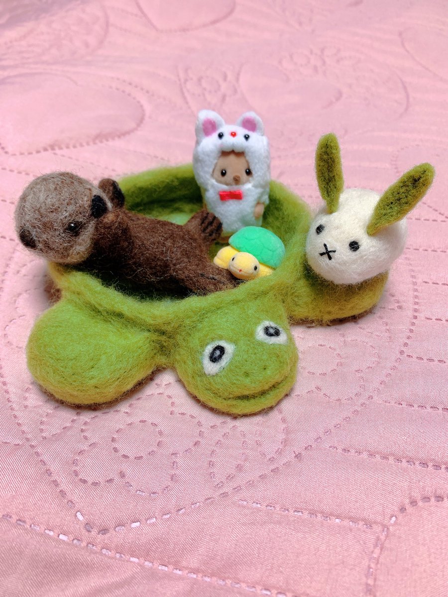 Joeyにお友達を作ってあげました🐰 夏目友人帳に出てくる、夏目が作った雪うさぎの「玄」☺️ シェルドンの中がどんどん賑やかになってきたね💕 #羊毛フェルト #羊毛フェルトラッコ #JoeyTheSeaOtter #seaotter @vanaqua
