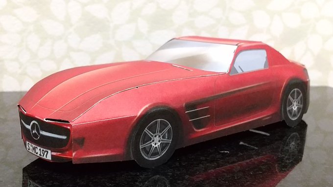 メルセデス SLS AMG(2010) 洋書「Cars: A Complete History」に収録の #ペーパークラフト です☺️ 切り抜きと折り線がはじめから入っているので簡単に組み立てができるペーパークラフトです☺️ ちょいとツッコミどころがある愛嬌のあるペーパークラフトです🤭 #メルセデス・ベンツ #SLSAMG