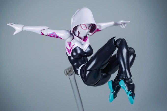 #千値練 SVアクション スパイダーグウェン(とハム) やっときた〜 相当カワイイ感じです。スパイダーチームアップ!!ペニーちゃん再販してくれ!!!!!! #spidergwen #AcrossTheSpiderVerse #オモ写 #SpiderManAcrossTheSpiderVerse