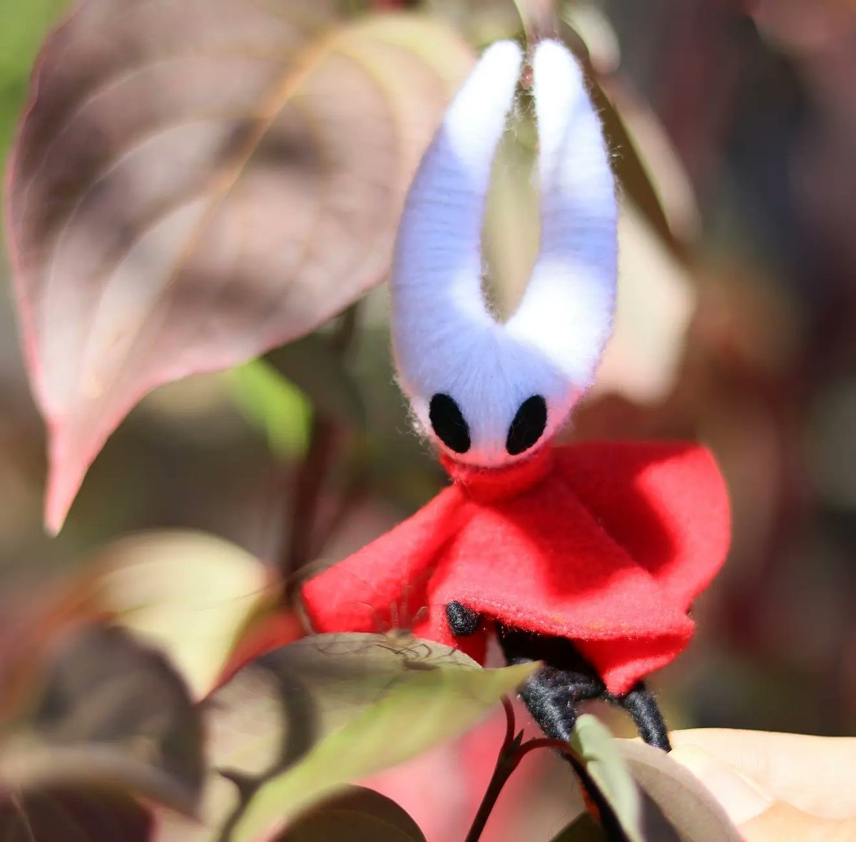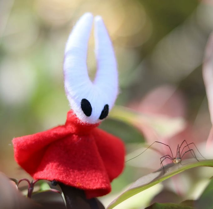 She is the tiniest plushie we have made 😭 she's like 9.5cm/3.74inch 😭❤️ lil fluffy babi spider❤️ We added her to our Etsy, too🤗🌸 #hollowknight #hollowknightart #hollowknightfanart #silksong #hornetsilksong