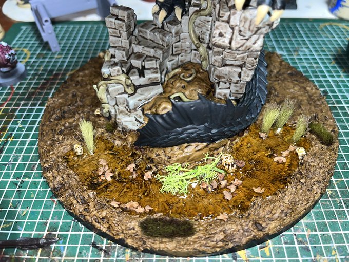 Continuing work on Aganzarax from @reapermini tonight @ 9:30pm CST. Ill@show a creative way of dealing with the cracks in the resin pour to make this dragon more spoopy! m.twitch.tv/gareth_hreidmar #miniaturepainting #dndart #smallstreamers #dragonart #dnd