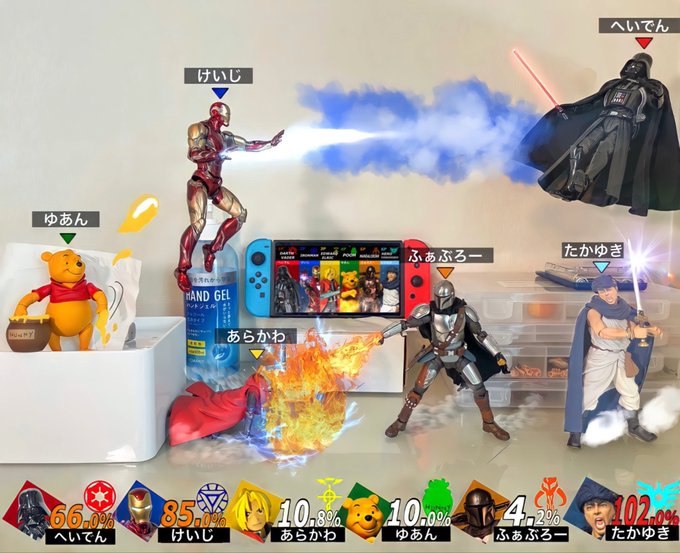 『我が家の大乱闘スマッシュブラザーズ』 各キャラの%表示にも実は意味があったりw マニアックな数字もあるけどわかる人いるかな🤣 #オモ写 #スターウォーズ #ディズニー #鋼の錬金術師 #アイアンマン #マンダロリアン #勇者ヨシヒコ #スマブラSP #大乱闘スマッシュブラザーズ #SmashBrosUltimate twitter.com/larcuni1/sta…