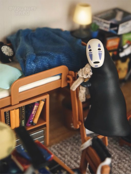 │ᐕ) ぁ⁾⁾ #オモ写 #toyphotography #カオナシ #千と千尋の神隠し #ジブリ #noface #SpiritedAway #StudioGhibli 可動フィギュアとかミニチュア雑貨でゆっくり遊べてなくて、小ちゃいおもちゃばっかり撮ってます( * ॑˘ ॑* )