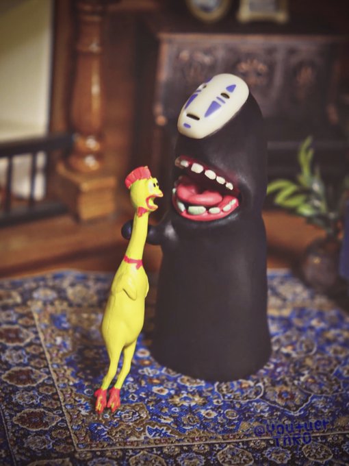 #夜のフィギュア撮影会 5/7 お題 『騒』 「あ"ぁ"〜〜〜〜〜❤️」 (既出) #rubberchicken #びっくりチキン #オモ写 #toyphotography #カオナシ #千と千尋の神隠し #ジブリ #studioghibli #SpiritedAway
