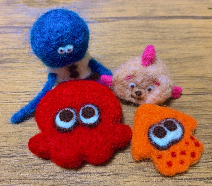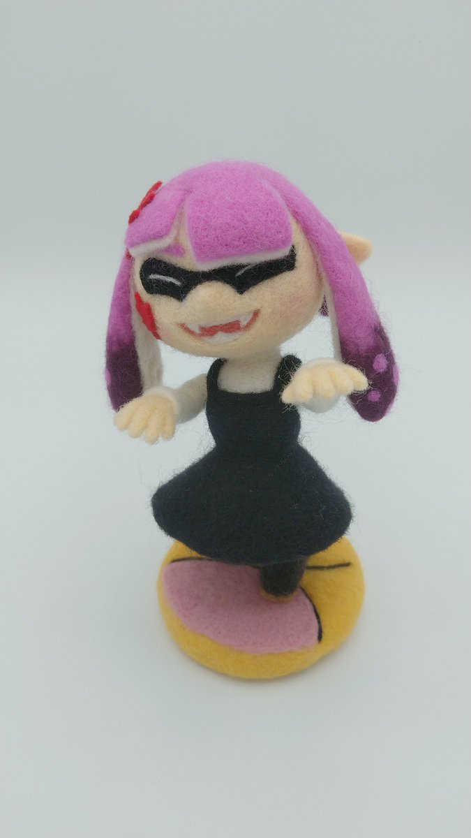 #らふてー手作り品評会 タイトル「イカエデさん」 コメント「羊毛フェルトで楓さん風のイカちゃんを作ってみました。隠れちゃってますが台座の模様はらふてーちゃんねるのチャンネルアイコンになってます。すぷらとーん楽しいですよね。イカ、よろしくー」 #羊毛フェルト #Splatoon