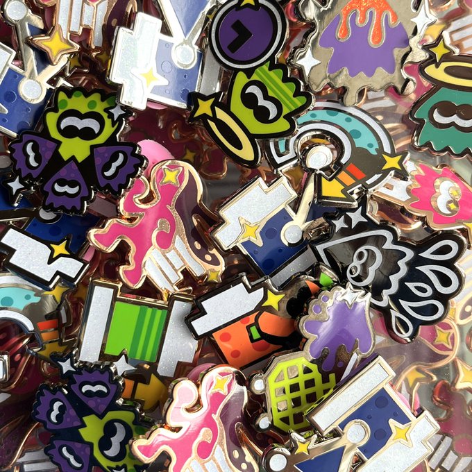 Hey everyone! ✨ My sh0p with ability chunk, angels & devils, and squid sisters pins will be opening this Friday 5/19 @ 6 PM EST. There will be NO reruns for any of these pins so if you want them this is your heads up! 🦑🎁 See you there! #Splatoon3 #Splatoon