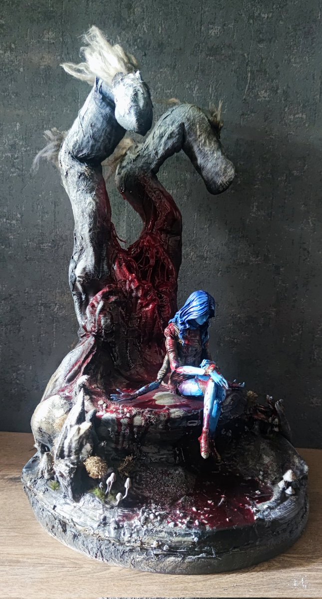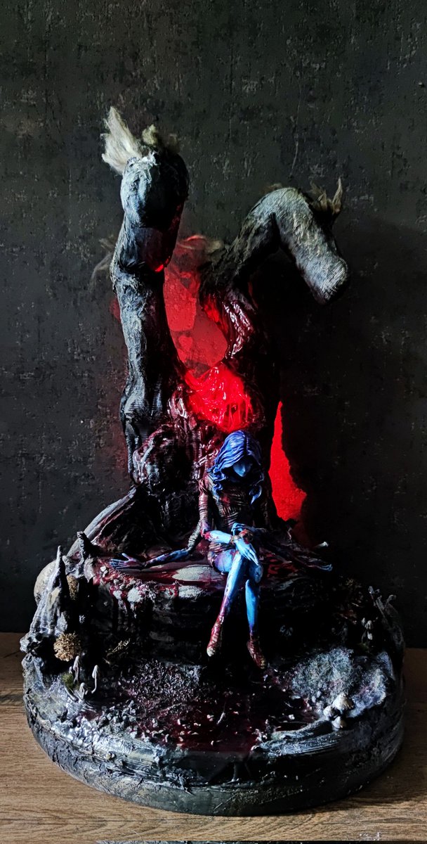 Finished commission Finger slayer Ranni with hairy fingers and LEDs being added between ripped flesh of two fingers. Standing over 65 cm tall Tons of fun trying out different things with previous designs ! #eldenring #rannithewitch #twofingers #fanart #custom #statue