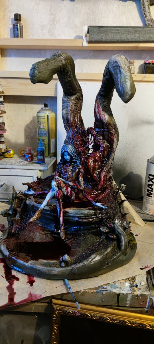 Sticky fingaz... Commissioned big version of Finger Slayer Ranni with that nasty hair and something extra coming along. WIP #eldenring #EldenRingFanart #rannithewitch #wip #statue