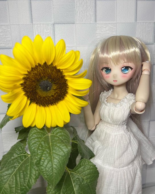 可愛いひまわりをお迎えしました🌻娘達はひまわりと背比べをしながら遊んでいます☺️✨今日は鈴音と花音と水音の写真を掲載しますね🌻😉💕 #もこもかっこ #THユカリnail #MDDはいいぞ #ドル沼CH #p_house #missantroop #プチリボン #ひまわり #向日葵 #sunflower