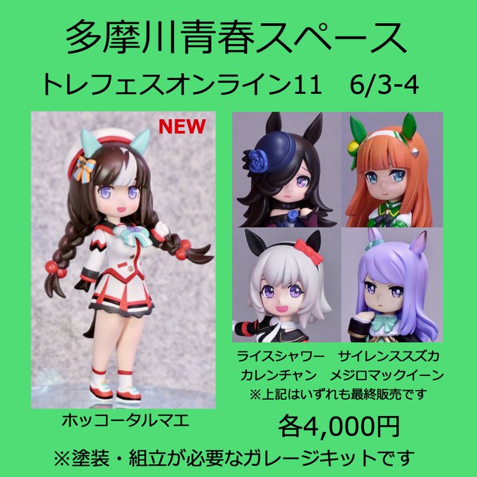 6/3(土)11:00 ~ 6/4(日)18:00 開催 \#トレフェスオンライン11/ ~お品書き~ 【新作】 ・ホッコータルマエ(ロコドルver 24000円 【再販】 ・ゴッホ 24000円 ・オグリ 24000円 ・タマ 24000円 ・カフェ 25000円 #TFO11 よろしくおねがいします!