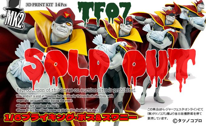 『1/6ブライキング・ボス&スワニー』完売いたしました!お買い求めいただいた皆様誠にありがとうございます!感謝!発送まで今しばらくお待ち願いますm(__)m #TFO7 #トレフェスオンライン7 #タツノコプロ 次回のTFO8(9/10-11)でも再販すべく準備いたします。引き続きよろしくお願いいたしますm(__)m