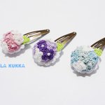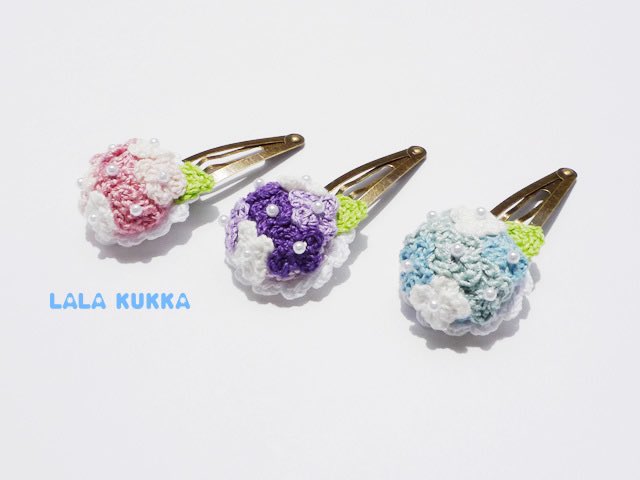 #TLに紫陽花を咲かせよう 素敵なタグ✨お借りします♪ かぎ針編みで作った紫陽花作品💠 バッグチャームとブローチ、ヘアピンです。(過去作品) ブローチは今年も作れたらなぁ〜と思っています☺️