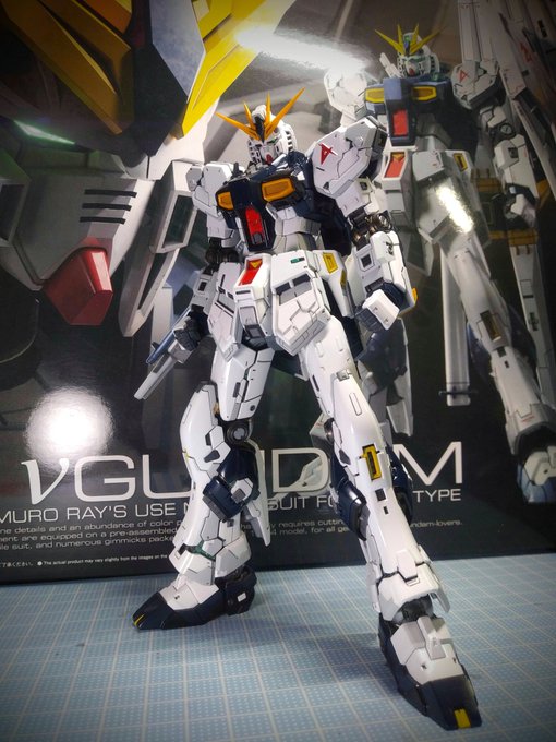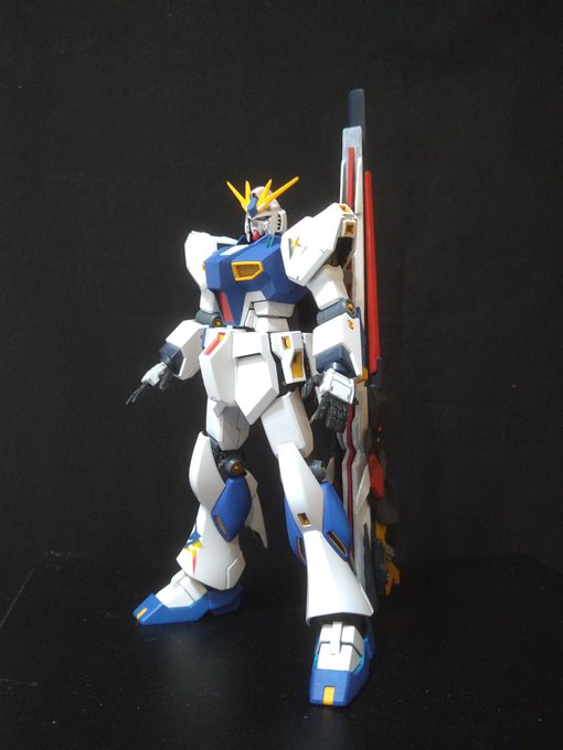 EG 1/144 νガンダム その8 LRFF 塗装終了 νガンダムの青もお色直し 福岡風 立ちポーズで完成。 シールドに1/100のマークを転用 EGなので他のデカールは割愛 装備アリもいいかも #TLを素立ちでいっぱいにしよう #ガンプラ #ガンプラの画像貼るとRTされると聞いて #ガンプラ好きな人と繋がりたい