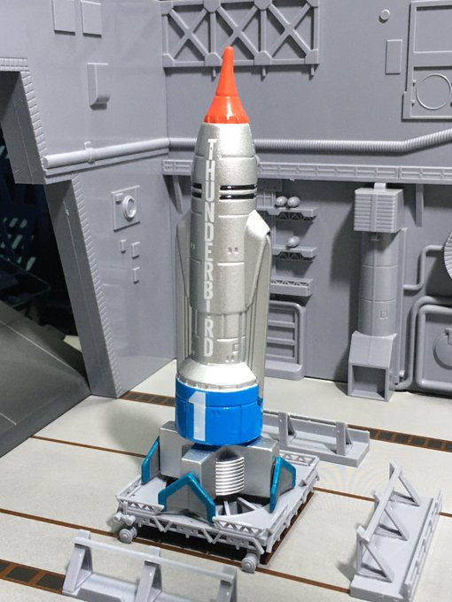 サンダーバード1が発射位置まで降りてくるスロープも完全再現!手のひらサイズなのにすごいクオリティ!😆 #サンダーバード #Thunderbirds #サンダーバード1号 #コナミ #PODビークル #オモ写
