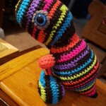 Rainbow Dino! My latest #crochet project 😁 #crochetdino #crochetstuffie #cute #paleoart? #TRex #dinosaurs #yarn #fiberart #madeitmyself #crochetpattern