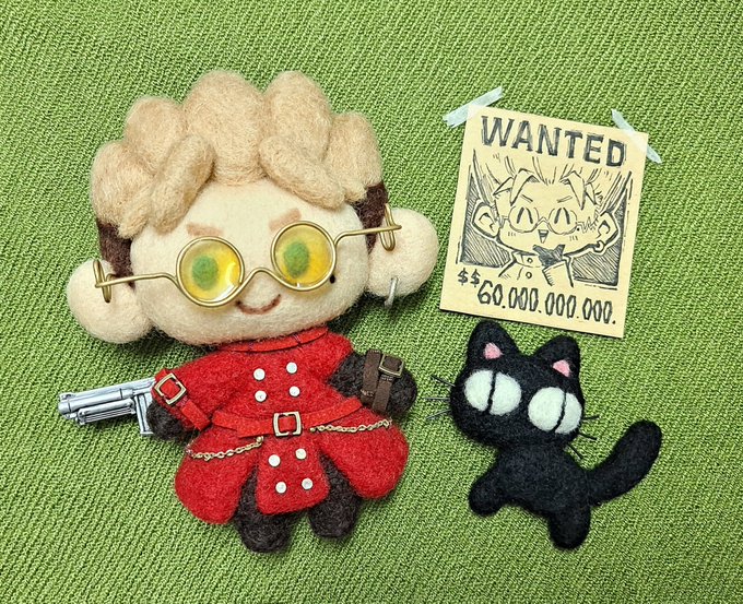 #TRIGUN #TRIGUNSTAMPEDE #トライガン 昨夜の最終話放送からちょうど1日。 本当に素晴らしい作品を ありがとうございました!!😭🙏🙏 と言うわけで「トンガリ」こと 黒ヴァッシュぬい完成しました! 4枚目はいつか、そうなったらいいな なんて、、😭