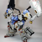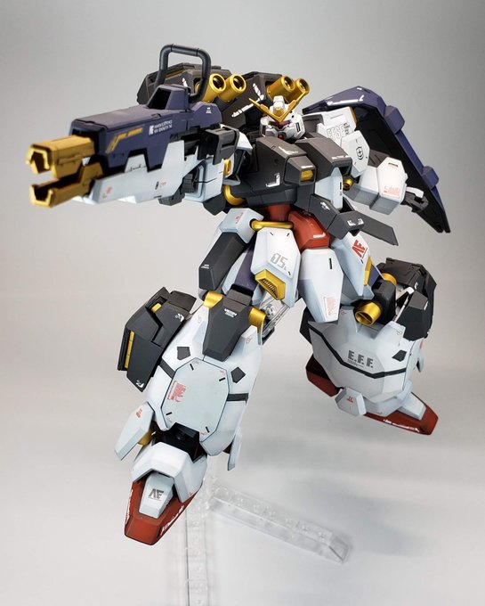 #Twitterをしている全ての人に届け私の作品 ガラスでストライクガンダムを作りましたが 落して腕を破損させてしまいました。 なので修復した後にストライクのカッターマットの上で改めて撮影しました。 という戯れを皆様に容認して頂いている筆塗りモデラーです🖌️
